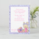 Niedliche Ostereinladung mit einem sonnigen und rosa Korb aus Ostereiern und lila Blumengrenze. Die Einladung kann für die Ostereijagd, das Osterfrühstück usw. angepasst werden. Einladungen mit Umschlägen und Ihrer Papierauswahl.
