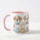 Niedliche Illustrationen von englischen Bulldogs verkleidet für Ostern. Ideal für Liebhaber von Haustieren oder Hundeeltern zu Ostern.