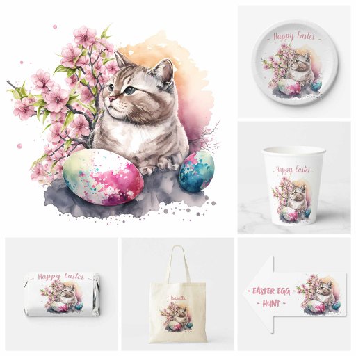 Easter Floral Watercolor CatDesignt von Patricia Santo