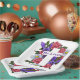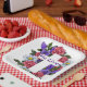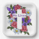 Osterpapier Teller mit einem Kreuz umgeben von farbenfrohen Blume.
