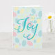 Gefaltete Ostergrüßkarte mit bearbeitbarem Text im Inneren. Gedruckt mit Pastelleier-Design aus hellrosa, Schmetterbecher gelb und Rotwein's Eigelb. Hat stilisierte Wortkunst "mit Freude gefüllt sein". Ihre Wahl von mehreren Größen. Suchen Sie nach passenden Geschenktüten, Geweben und anderen Gegenständen in derselben Designkollektion.