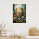 Wall Art of Great Oaster Poster mit einem großen Ostereier und niedlichen Tieren wie ein Osterhasen oder Kaninchen. Magische Fantasy Forest Blumenkunst mit Blume und bezaubernden Tieren.