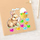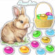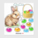 Niedlich Osterhasen mit einem Korb farbenfroher Ostereier. Text kann personalisiert sein. Bunnies symbolisieren Überfluss, Langlebigkeit und Glück!