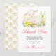 Schöne Oster-Dankeskarte mit einem niedlichen Lamm und rosa und gelben Blumen. Die Wörter können an Ihre eigenen Details oder Anforderungen angepasst werden