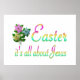 Teilen Sie mit anderen, worum es bei Ostern geht mit diesem bunten Design mit bemalten Blume und den Worten "Ostern", es geht um Jesus.
