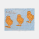 Eine Vintage, antike Osterpostkarte mit drei schwammig gelben Filzkichern in Folge. Hintergrund in blau. Frohe Ostern!