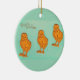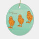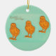 Eine Vintage, antike Osterpostkarte mit drei schwammig gelben Filzkichern in Folge. Hintergrund in grün. Frohe Ostern!