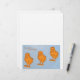 Eine Vintage, antike Osterpostkarte mit drei schwammig gelben Filzkichern in Folge. Hintergrund in blau. Frohe Ostern!