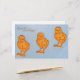 Eine Vintage, antike Osterpostkarte mit drei schwammig gelben Filzkichern in Folge. Hintergrund in blau. Frohe Ostern!