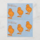 Eine Vintage, antike Osterpostkarte mit drei schwammig gelben Filzkichern in Folge. Hintergrund in blau. Frohe Ostern!
