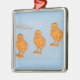 Eine Vintage, antike Osterpostkarte mit drei schwammig gelben Filzkichern in Folge. Hintergrund in blau. Frohe Ostern!