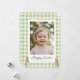 Feiern Sie Ostern mit einer süßen und persönlichen Note mit dieser Happy Easter-Fotokarte mit einem weichen grünen Wasserfarben-Gingham-Design und niedlichen Baby-Hasen-Akzente. Die Vorderseite enthält einen großen Bilderrahmen für Ihr Lieblingsfoto, und die "Happy Easter"-Grußformel und die Absenderzeile sind anpassbar, was es zu einer liebevollen Möglichkeit macht, eine persönliche Osterbotschaft an Familie und Freunde zu senden.
