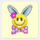 Dieses niedliche Ostersonnige Gesicht mit rosa Bogen auf blassgelbem Hintergrund wäre für jedes Kind niedlich.