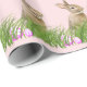 Kaninchen in grünem Gras mit rosa Ostereiern auf rot-rosa Hintergrund. Die Hintergrundfarbe kann geändert werden.