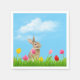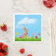 Frühlingtulips im Gras mit niedlichem braunem Osterhasen und blauem Himmelshintergrund