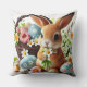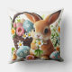 Ein niedliches Foto des Osterhasen zwischen Blume und Eiern