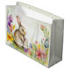 Osterhase mit bemalten Eiern im Garten Große Geschenktüte