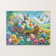 Osterhase mit Eiern im Blumengarten - Puzzle