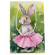 Niedliches Aquarellbunny mit einem rosa Tutu für Ostern und rosa und weißem Gingham Hintergrund. Text kann geändert werden.