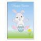 Niedlich Osterhase mit Ostereier und Blume Happy Ostercard. Text kann zu Ostern oder zum Geburtstag personalisiert werden. Bunnies symbolisiert Langlebigkeit, Überfluss und Glück.