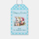 Das ist ein niedliches Ostergeschenk-Tag mit einem Aquarellbild eines zauberhaften Hasen, Ostereiern und Blume auf hellblauem und polka dot Hintergrund. Der gesamte Text auf der Karte ist individuell anpassbar.