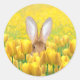 Flämischer Riesenbraun-Hasen, der sich in den gelben Tulpen versteckt, entweder auf Ostereiern jagen oder verstecken niedlich Ostern-Hasen-Aufkleber