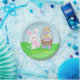 Dieses flauschige, weiße, sonnige und gelbe Babychick wird in diesem Osterdesign vorgestellt. Das frisch geschlüpfte gelbe Hühnchen ist in einem braunen Korb. Neben dem Korb befindet sich der Osterhase mit vier bunten Ostereiern. Sie können dieses Design anpassen, indem Sie Ihren eigenen Text hinzufügen.