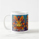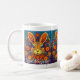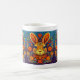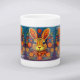 Eine exquisite Osterillustrierung, die einen stilisierten Kaninchenkopf mit lebhaften Farben und komplexen Mustern zeigt. Inspiriert von den reichen Traditionen der indischen Volkskunst und der charmanten Handwerkskunst osteuropäischer Holzkunst, verkörpert dieses Design das Wesen des Frühlings: Erneuerung, Fruchtbarkeit und das Erwachen der Natur. Eine Symphonie von Blumenelementen umgibt das Kaninchen, eine visuelle Feier der unendlichen Vielfalt und Schönheit der Natur. Die lebhafte Farbpalette aus Gelb, Orange und Tiefenblau mit einem Hauch psychedelischen Flairs schafft ein unvergessliches Bild. Verändere die Botschaft, biete diese Osterfeier-Tasse an und teile einen herzlichen Ausdruck feierlicher Freude und symbolischer Wärme!