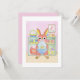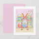"Schau! Sieh dir meine Ostereier an!" Dieser niedliche Hase, der ein Osterei hält, wurde für ein kleines Kind gezeichnet. In ihrem Zimmer steht ein Regal voller Ostereier, die sie gesammelt hat. Sieht sie nicht glücklich aus, wie sie vor all diesen farbenfrohen Mustern steht? Diese Karte ist perfekt für Ihren kleinen Hasen.