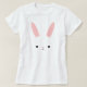Dieses ist ein niedliches Shirt für Ostern oder jederzeit des Jahres. Es kennzeichnet ein weißes Häschen mit den rosa Ohren. Sie können das Shirt besonders anfertigen, indem Sie auf dem orange Knopf klicken und in Ihrem Namen oder in Wörtern Ihres Wählens schreiben.