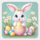 Osterhasen Niedliche Blumenaufkleber in Frühlingsf Quadratischer Aufkleber