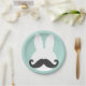 Feiern Sie Ostern mit diesem Spaßpapier-Teller, der ein Häschen kennzeichnet, das einen Schnurrbart trägt.