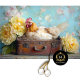 Fügen Sie Ihren kreativen Projekten rustikale Eleganz mit diesem schönen decoupage Papier Design hinzu. Dieses Kunstwerk mit einer goldenen Henne, eingebettet in einen Vintagen, braunen Koffer, der von Stroh gesäumt ist und von lebhaften gelben Pfannkuchen umgeben ist, spiegelt den Charme der Ästhetik des Bauernhauses wider. Der türkisfarbene Hintergrund fügt sich harmonisch in eine zarte und zeitlose Touch ein, die sich perfekt für Ostern, Hochzeiten, Geschenkpackungen, Heimwerker oder rustikal inspirierte Dekoration eignet. Lassen Sie Ihre Projekte mit diesem luxuriösen und künstlerischen Tissue-Papier ausbauen.