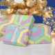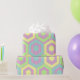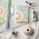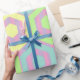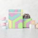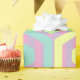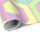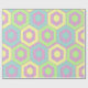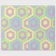 Dieses Verpackungspapier hat eine geometrische Form von Hexagonen in blassblau, blassgelb und blassgrün auf einem Streifen in blassrosa und blassrosa lila.