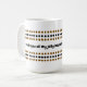 Saison - Frühjahr - Ostern - Koffein - Becher - weißer Hintergrund - schwarze Schrift - braune und schwarze Polka-Punkte