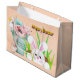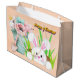 Eine große Geschenktasche für Frühjahr oder Ostern, die mit einem Eimer voller Blume und Niedlichem Kaninchen ausgestattet ist.