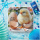 Ein flauschiger, gelber Küken, der aus einem Ei geschlüpft ist und von lebhaften Frühlingsblumen und festlichen Osterdekorationen umgeben ist. Diese charmante Szene feiert die Freude und Erneuerung der Ostersaison.