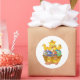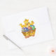 Dieser große runde Aufkleber ist weiß mit einem niedlichen Osterküken und einem Eierkorb bedruckt. Passen Sie dieses Objekt an oder kaufen Sie, wie es ist. Bild