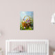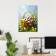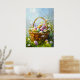 Grosses Osterposter mit einem großen Ostereier und niedlichen Tieren wie Osterhasen oder Kaninchen. Magische Fantasy Forest Blumenkunst mit Blume und bezaubernden Tieren. Niedlicher Osterkorb.
