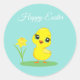 Osterküken mit Blume auf Aquamarin Runder Aufkleber