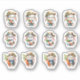 Ein buntes Ostergebäck mit Karotten und Brillen für alle Ostergöttlichen Bedürfnisse. Farbenfrohe Aufkleber in einem Set von drei verschiedenen Szenen mit Begrüßungsaussehen nach Ostern. Jedes kleine Blatt enthält 12 Boy Bands mit Karotten und Brillen Osteraufkleber in drei verschiedenen Stilen