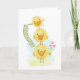 Dies ist eine niedliche und lustige Osterkarte mit drei stehenden Jungen übereinander. Das Küken auf dem Boden ist glücklich und lächelnd und hält einige rosa Blume, das etwas kleinere Küken stehend auf seinem Kopf ist glücklich und komponiert. Das kleinste Küken, das an der Spitze der Pyramide steht, hat jedoch ihr Gleichgewicht verloren und hat gerade die Fahne des GLÜCKLICHEN OSTERS fallen gelassen, die sie eigentlich in Ruhe halten sollte! Illustration und Design von Natalie Kinnear
