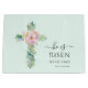 Dieses schöne Design besticht durch ein grünes Aquarellkreuz mit blütenrosa Blume. Eleganter Drehbuch- und Serif-Schriftart in Schwarz: "Er ist Risen, genau wie er sagte." Matthew 28:6