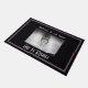 Doormat mit schwarzem Hintergrund, lila und goldfarbenen Rändern, die ein Bild der Seite einer heiligen Bibel umgeben, mit einem Bild einer dornigen Krone, die eine Herzform in der Mitte der in der Mitte der Türmatte gedruckten Bibel bildet. Er ist in einem großen weißen Text unter dem Bild Risen. Hinzu kommen die Worte "Willkommen auf unserer Zuhause".