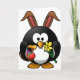 Lustiger Cartoon Osternpenguin mit Eiern und Blume.