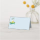 Diese gefaltete Platzkarte wird in Pastellblau mit einem festlichen Happy Oaster Küken und Ei Druck gezeigt. Passen Sie dieses Objekt an oder kaufen Sie, wie es ist.