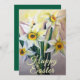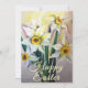 Bouquet von Narzissen mit Happy Oaster Nachricht vorne. Eine schöne Karte für einen schönen Urlaub zu senden an Familie und Freunde. Karten können selten verschickt werden, aber sie werden vom Empfänger sehr geschätzt.