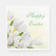 Osterpapierservietten in weißer Mittagsgröße mit hübschem weißen Tulips-Druck. Passen Sie dieses Objekt an oder kaufen Sie, wie es ist.