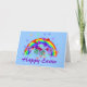 Ein Regenbogenbogen überragt farbenfrohe Lilien, während die farbenfrohen Herzen vieler Farben über die Szene schweben und Ihnen ein glückliches Ostern wünschen. Sehr niedliches Osterdesign geeignet für Säugling, Kleinkinder und Junggebliebene.