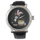 Osterschwarze Katze Tuxedo Kaninchen Bunny Ears Ei Armbanduhr